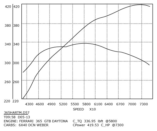 This Daytona engine represents the maximum tune for a hot street Daytona. This engine makes as much power as an average Comp Daytona. Not the most friendly of street engines, but definitely drivable, could be used as a dual purpose street/track engine. Most of the power increase came from good head porting and manifold matching.